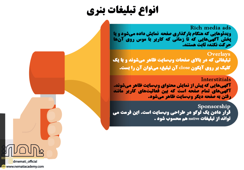از انواع تبلیغات بنری می توان به موارد زیر اشاره کرد:
