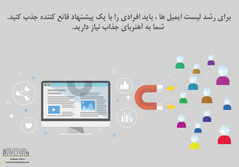 یک آهنربای مشتری و مخاطب، چیز بسیار جذابی است که شما در ازای آدرس ایمیل به صورت رایگان به آن ها هدیه می کنید. لازم نیست برای ایجاد هر چیزی هزینه ای داشته باشید. بیشتر آهنرباها موارد دیجیتالی مانند PDF ، فایلهای صوتی MP3 یا فیلم هایی هستند که می توانید خودتان آن را با کمترین هزینه و یا بدون هزینه ایجاد کنید.