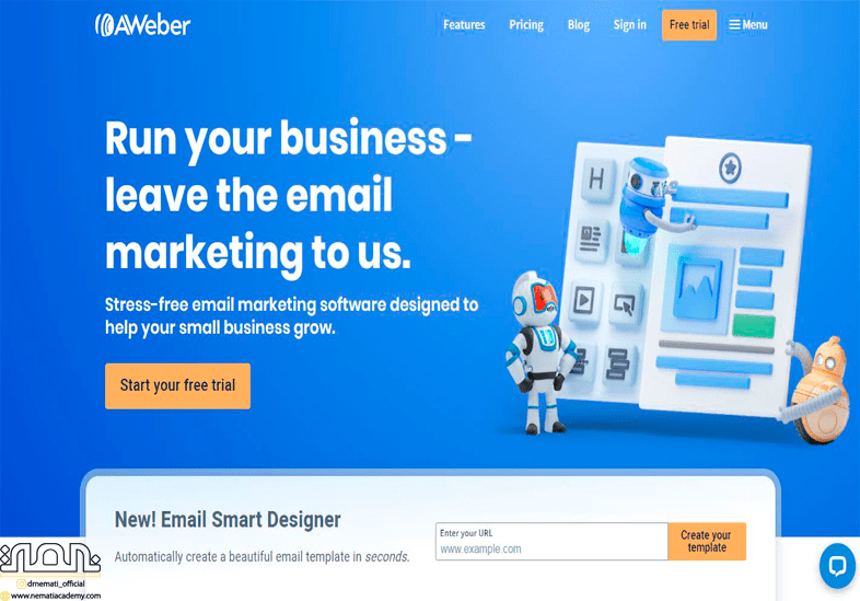 AWeber یکی از قدیمی ترین و محبوب ترین خدمات پرطرفدار بازاریابی ایمیل است که به کسب و کارهای کوچک کمک می کند و طیف گسترده ای از ابزارها مانند پاسخگویی خودکار ، سازنده ایمیل، گزینههای تقسیمبندی و موارد دیگر را ارائه می دهد.و پشتیبانی خوبی برای مشتری دارد و شما می توانید با استفاده از لیست های Aweber + OptinMonster ایمیل های بسیار هدفمندی ارسال کنید. این سرویس بر روی ورد پرس هم نصب می شودبرای استفاده از این خدمات یک دوره 30 روزه سرویس رایگان در اختیارتان قرار می گیرد و پس از آن اشتراک ها از ماهی 19 دلار شروع می شود.