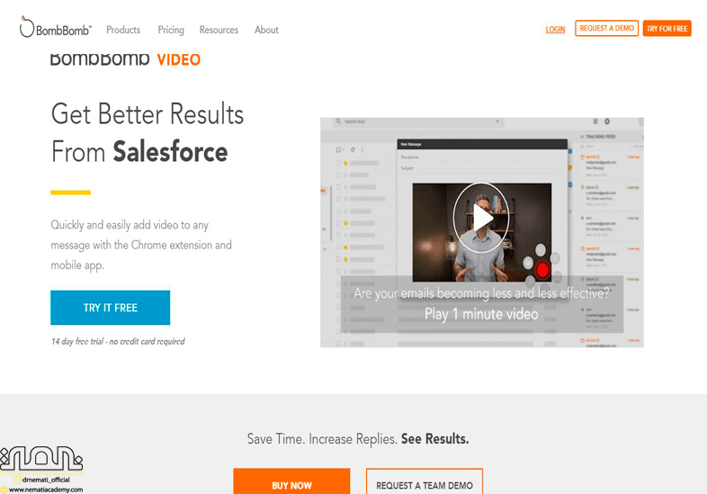 bombomb یک ابزار بازاریابی آنلاین برای ویدئو ها در فضای ابری می باشد. با استفاده از ویدئو ها و ارسال آن از طریق سرویس های اجتماعی، پیام کوتاه و ایمیل مخاطبان را به استفاده از سایت ها و کسب و کار شما دعوت می کند.BombBomb به عنوان یک برنامه کاربردی برای دستگاه های مبتنی بر Android و iOS در دسترس است و انعطاف پذیری کاربران را برای مدیریت در هر زمان امکان پذیر می کند. همچنین با پشتیبانی از ادغام برنامه با سیستم عامل های مختلف مانند Outlook ، Salesforce و Gmail ، بهره وری کاربر را افزایش می دهد.