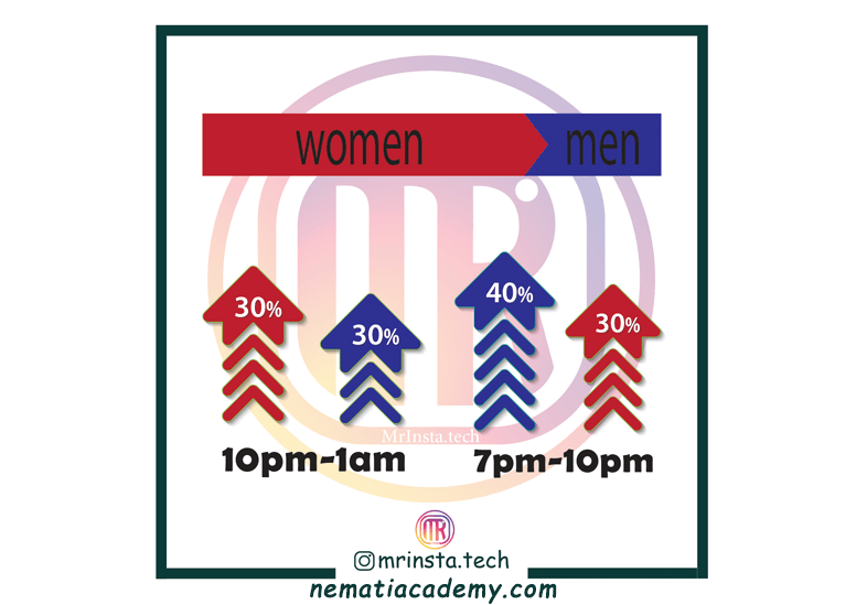 اینستاگرام اپلیکیشنی محبوب با بیش از ۱ میلیارد کاربر در سراسر جهان است. حدود ۷۰٪ این کاربران رو خانمها تشکیل میدهند. طبق آمارها بیشترین ساعت استفاده خانمها از اینستاگرام از ساعات ۱۰ تا ۱ نیمه شب است در حالی که این ساعتها برای آقایون از ۷ تا ۱۰ شب هست.
