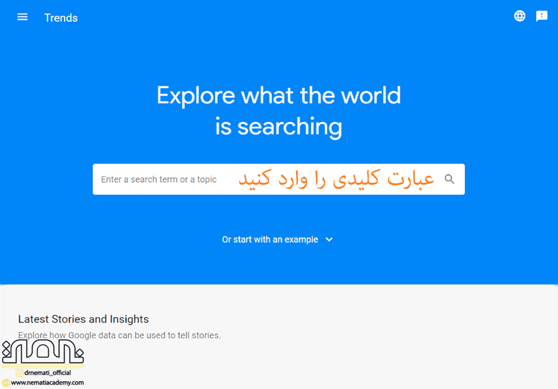 منظور از واژه trend روندی است که از این ابزار استفاده میکنیم تا روند تغییرات در میزان جستجوی عبارت های گوناگون را بسنجیم.