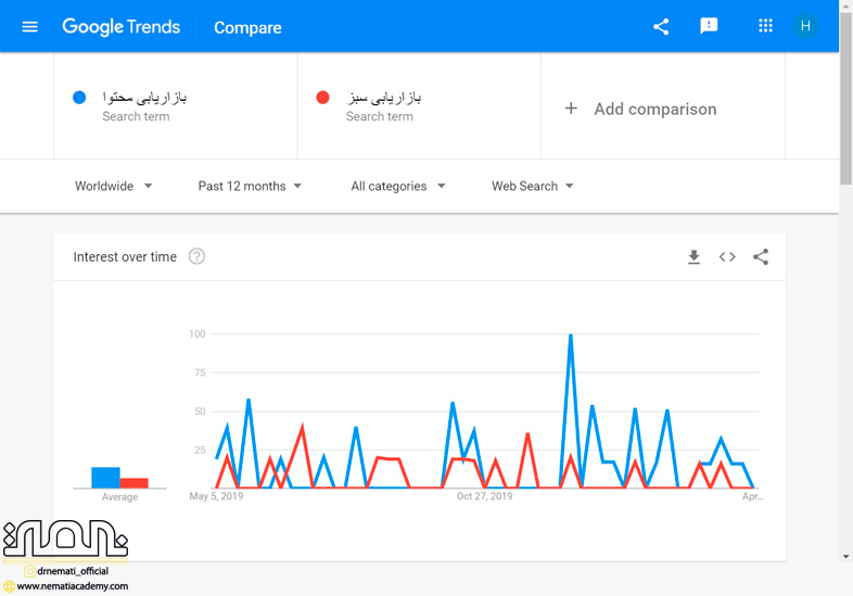 گوگل ترندز این امکان را از طریق گزینه add comparison به ما می دهد تا میزان تمایل افراد به دو یا چند عبارت را با یکدیگر مقایسه کنیم.