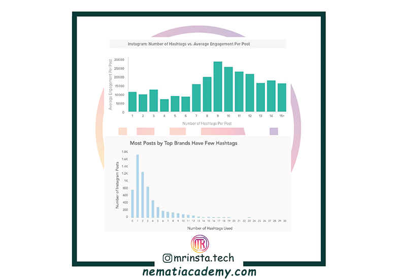 هشتگ ها به دیده شدن پست شما کمک میکنه و اینستاگرام به شما امکان گذاشتن ۳۰ هشتگ رو میده اما این به این معنی نیست که شما باید از ماکزیمم تعداد در اختیارتون استفاده کنید. طبق آمار بیشتر پست ها دارای یک هشتگ هستند اما تحقیقات نشان داده که پست هایی با ۹ هشتگ بیشترین اینگیجمنت رو دریافت کردند. به این نکته توجه داشته باشید که این آمار کلی است و ممکن است برای هر صفحه متفاوت باشه اما دونستن روتین کلی میتونه به شما در استفاده از هشتگ ها کمک کنه.